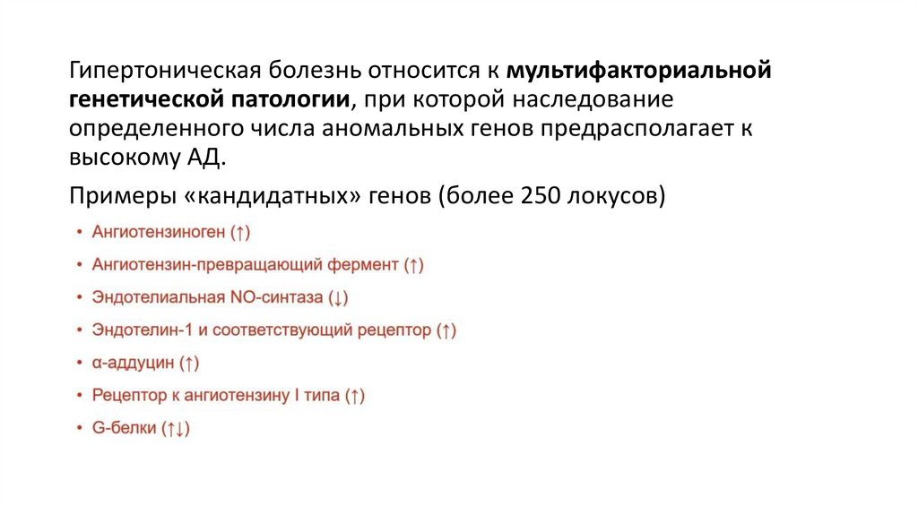 Гипертоническая болезнь относится к мультифакториальнойгенетической патологии, при которой наследование