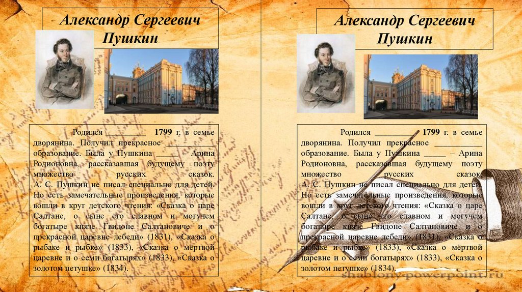 образование. Была у Пушкина _____ – Арина