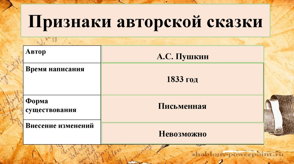 Признаки авторской сказки