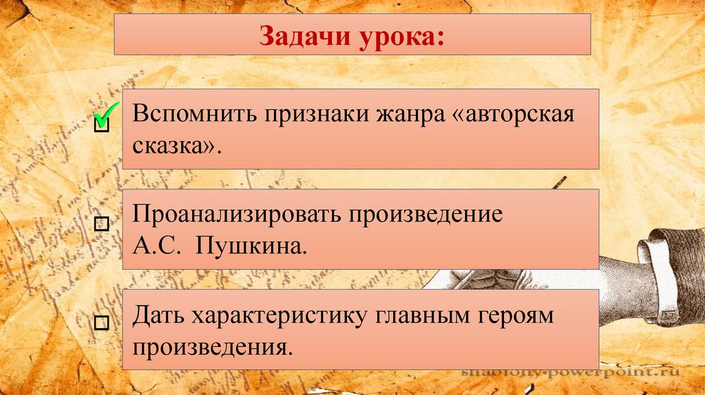 Задачи урока:Вспомнить признаки жанра «авторская