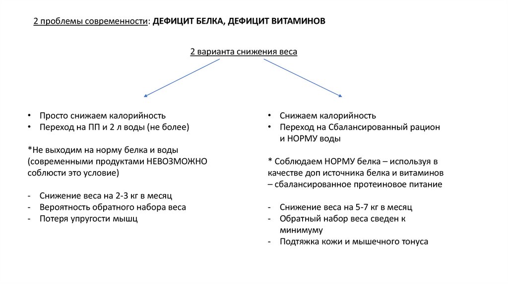 2 проблемы современности: ДЕФИЦИТ БЕЛКА, ДЕФИЦИТ ВИТАМИНОВ2 варианта снижения веса