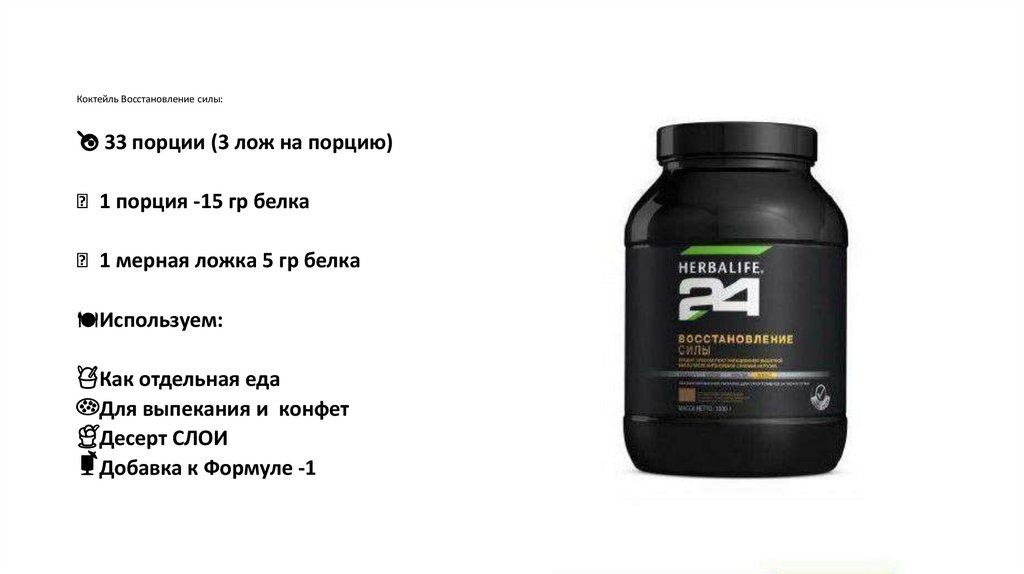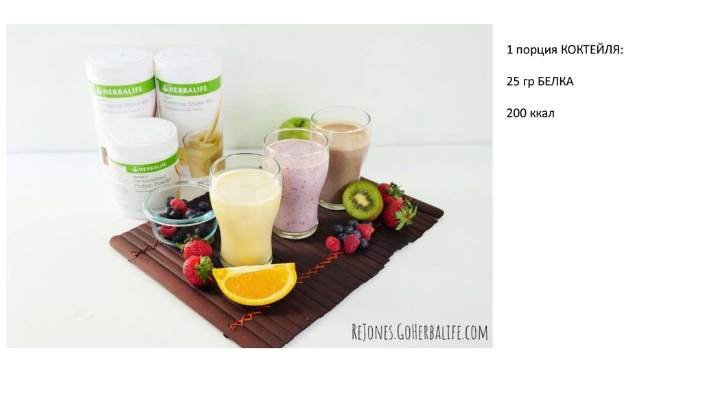 1 порция КОКТЕЙЛЯ:25 гр БЕЛКА