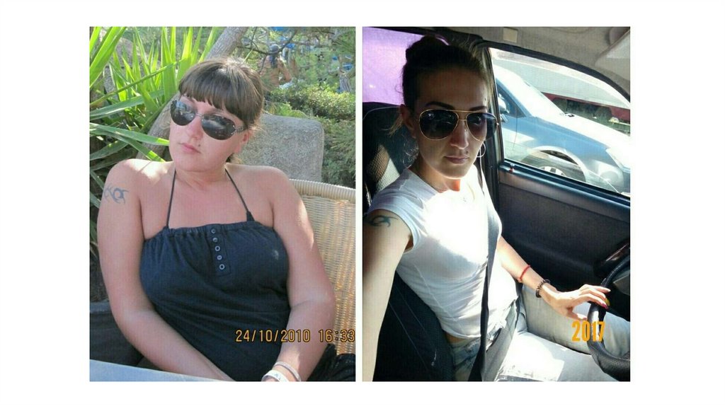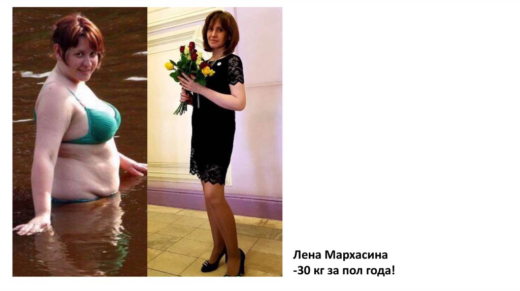 Слева человек похудел за счет жировой массы, поэтому ушли ненужные