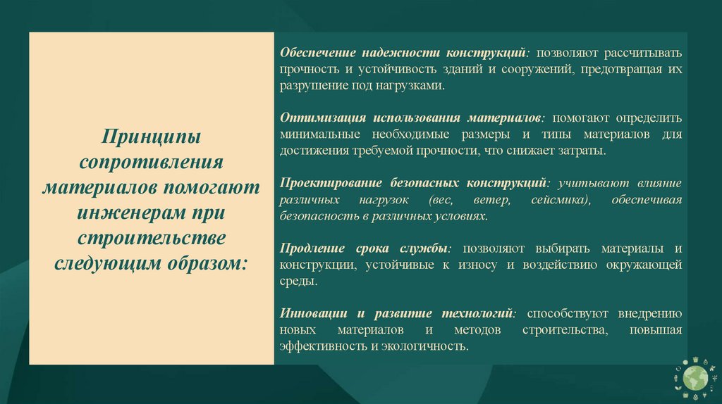 Обеспечение надежности конструкций: позволяют рассчитыватьпрочность и устойчивость зданий и сооружений, предотвращая их
