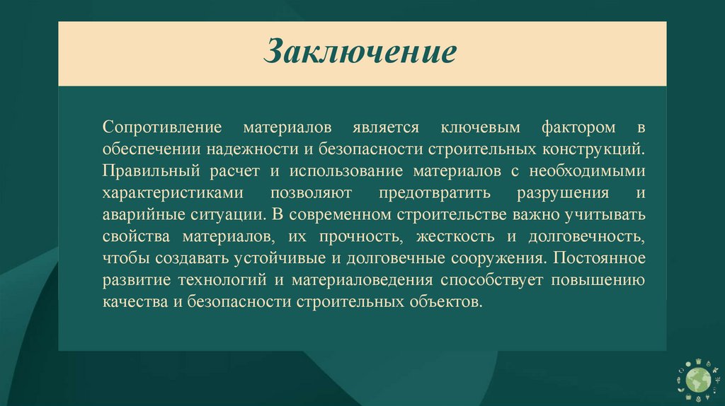 ЗаключениеСопротивление материалов является ключевым фактором в