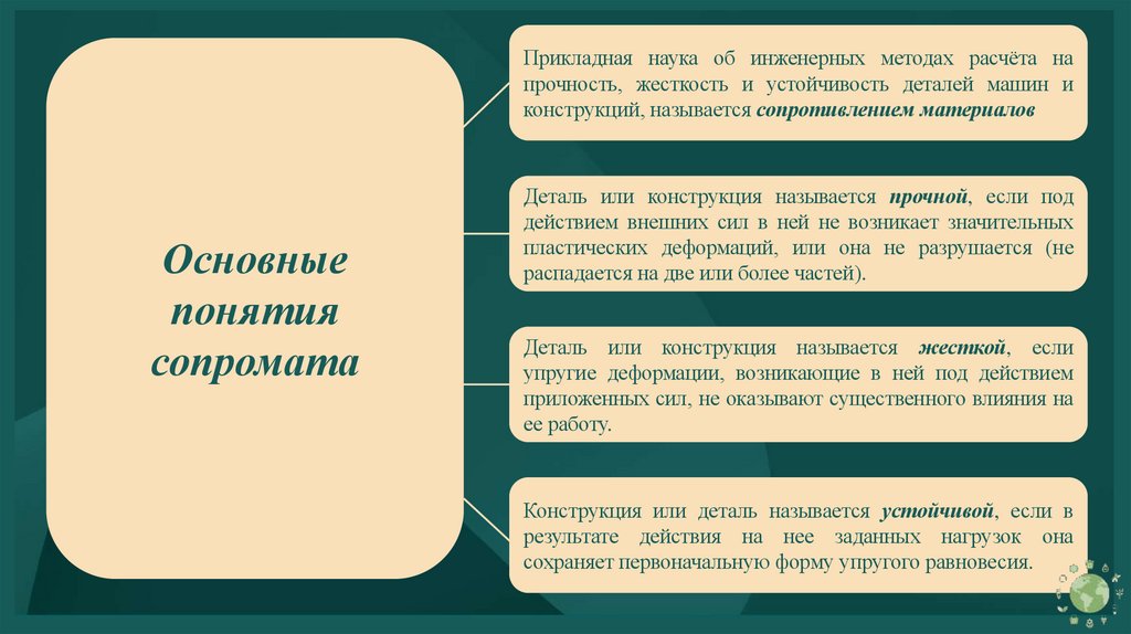 Прикладная наука об инженерных методах расчёта напрочность, жесткость и устойчивость деталей машин и
