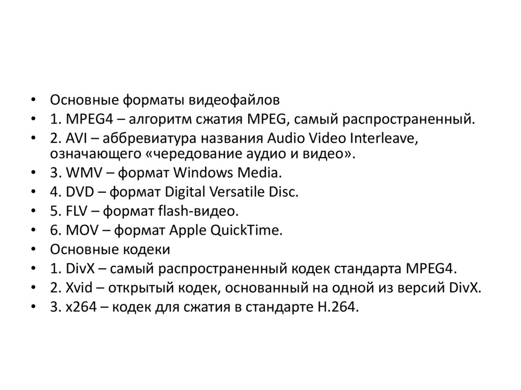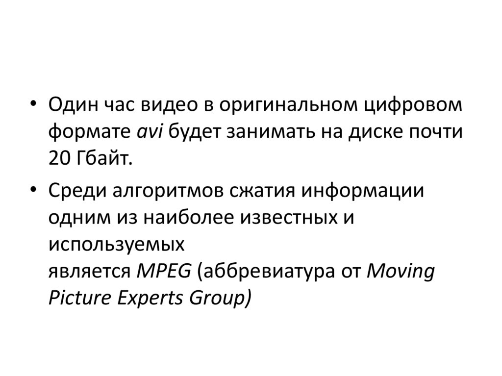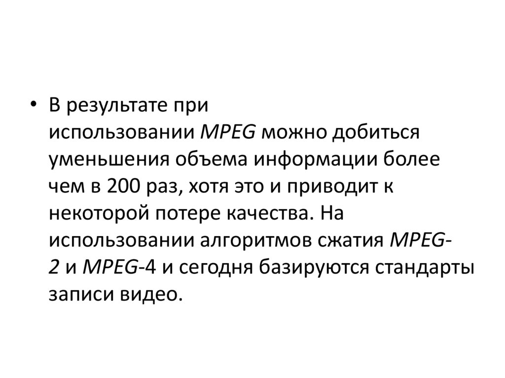 использовании алгоритмов сжатия MPEG2 и MPEG-4 и сегодня базируются стандарты