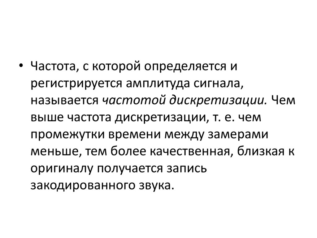• Частота, с которой определяется ирегистрируется амплитуда сигнала,