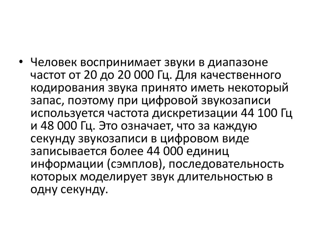 • Человек воспринимает звуки в диапазонечастот от 20 до 20 000 Гц. Для качественного
