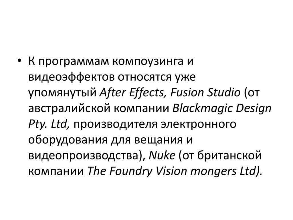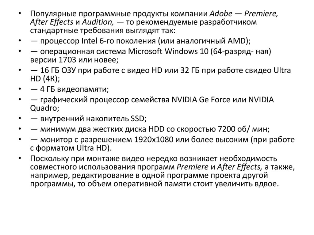 • Популярные программные продукты компании Adobe — Premiere,After Effects и Audition, — то рекомендуемые разработчиком