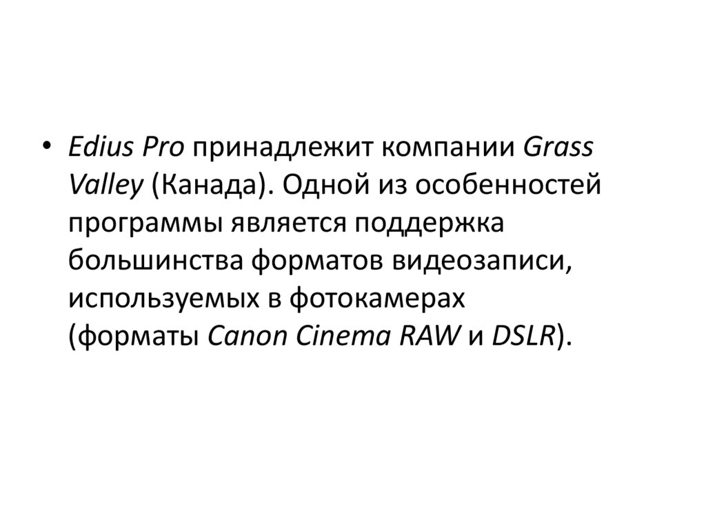 • Edius Pro принадлежит компании GrassValley (Канада). Одной из особенностей