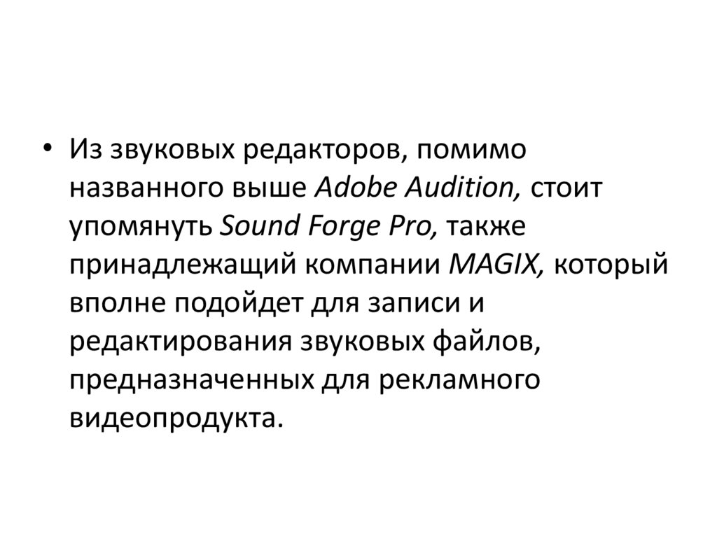 • Из звуковых редакторов, помимоназванного выше Adobe Audition, стоит