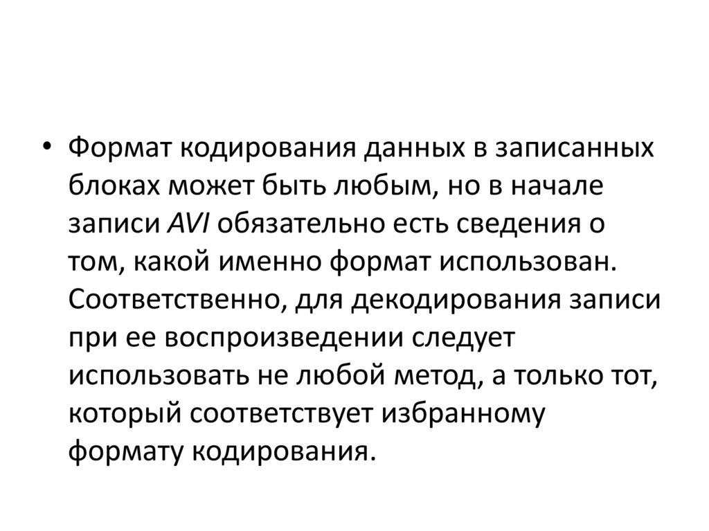 • Формат кодирования данных в записанныхблоках может быть любым, но в начале