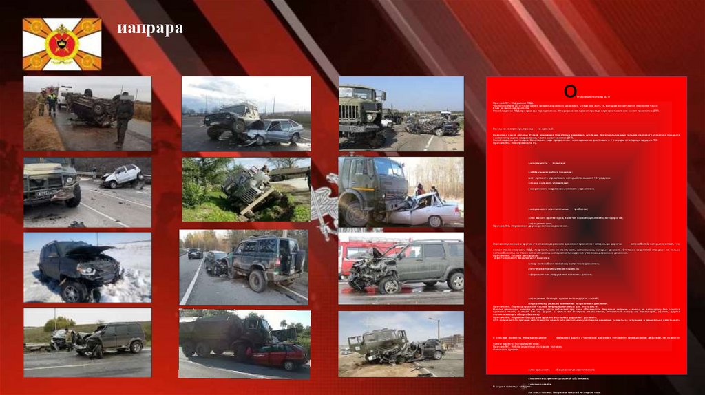 Ча с та я пр и ч и на Д Т П – на р у ше ни е пр а в и л д о р о жно г о д в и же ни я . С р е д и ни х е с ть те , к о то р ые в с тр е ч а ютс я на и б о л е е ч а с то :