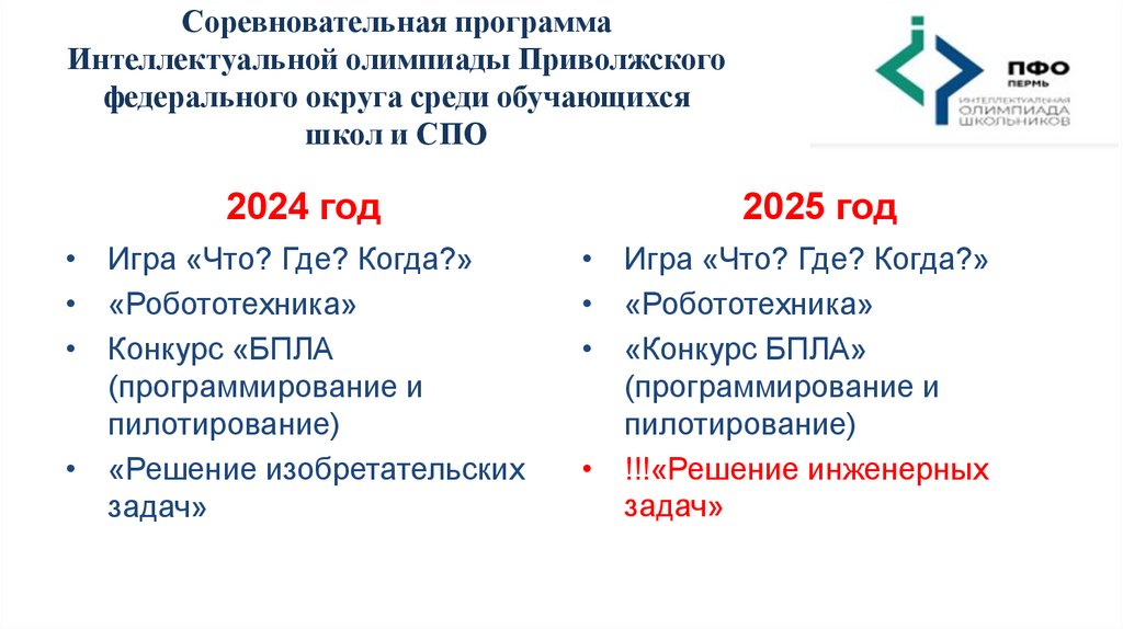 2. Соревновательная программа Интеллектуальной олимпиады Приволжского федерального округа среди обучающихся школ и СПО