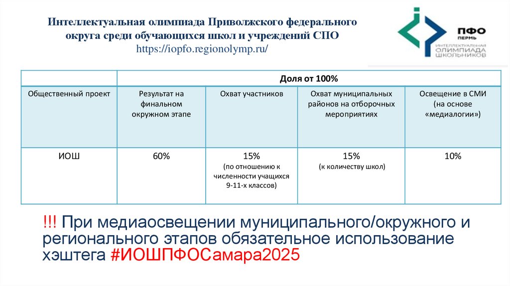 социальных сетях с использованием хэштега #ИОШПФОСамара2025