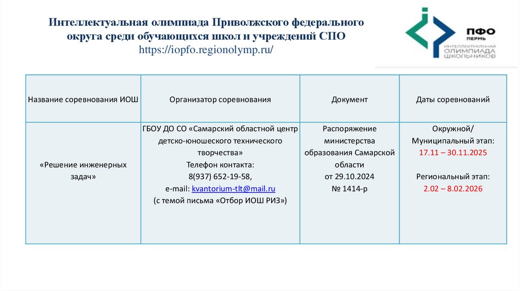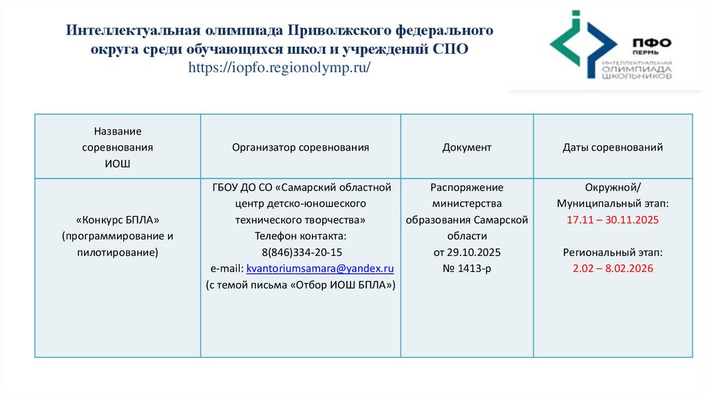 олимпиады среди обучающихся школ и СПО Самарской области в 20252026 учебном году.