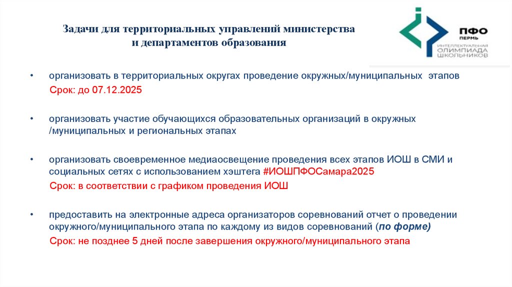 Срок: не позднее 5 дней после завершения окружного/муниципального этапа