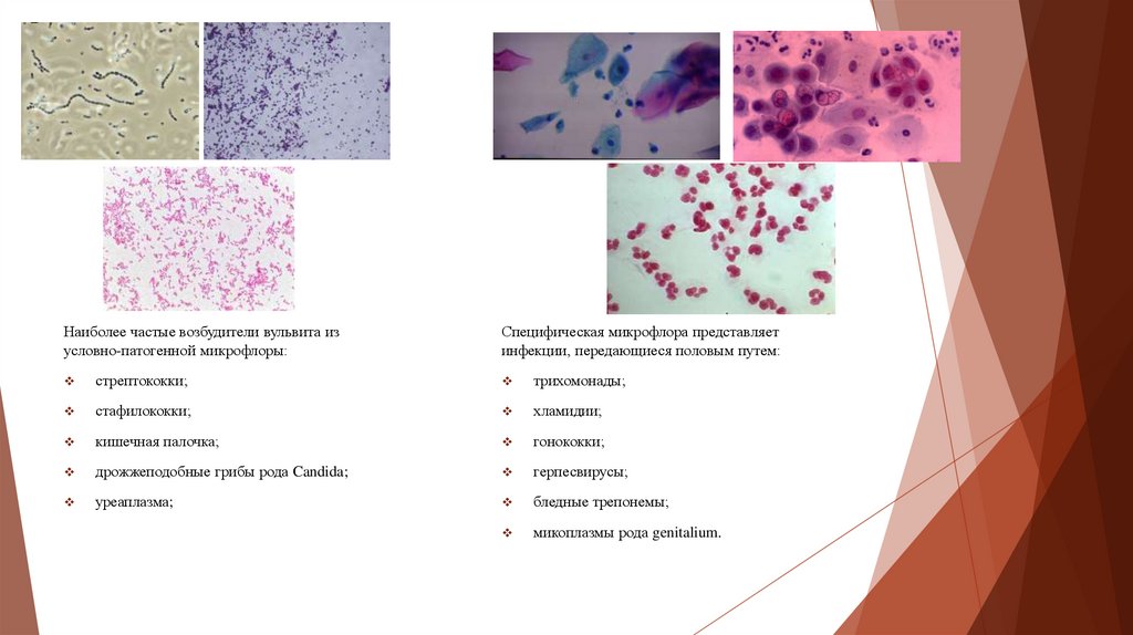 Наиболее частые возбудители вульвита изусловно-патогенной микрофлоры: