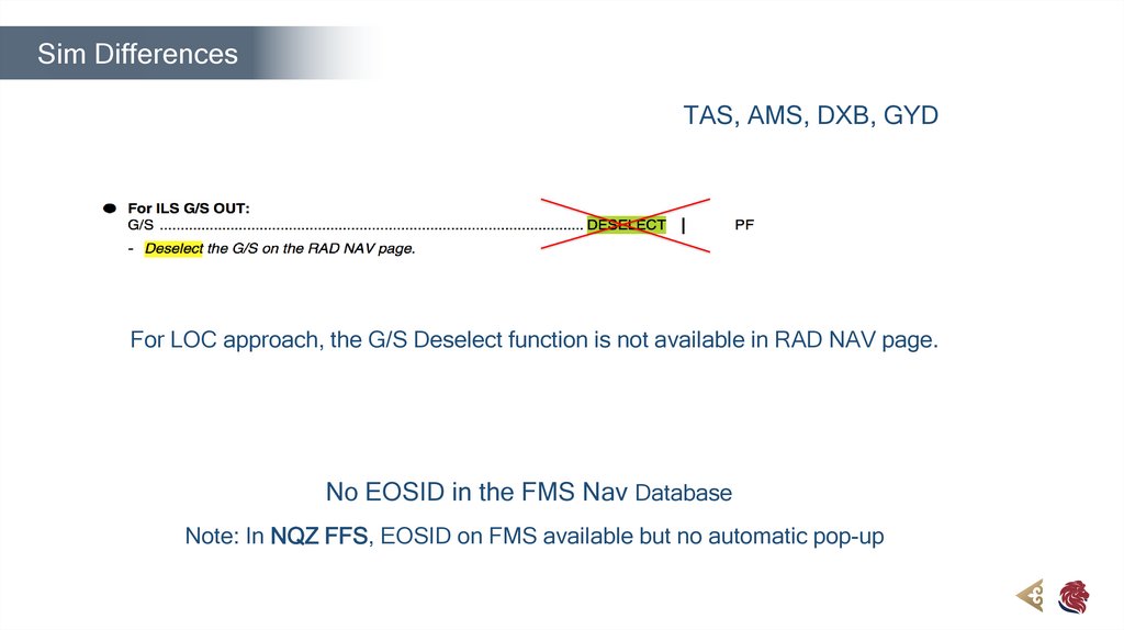 For LOC approach, the G/S Deselect function is not available in RAD NAV page.