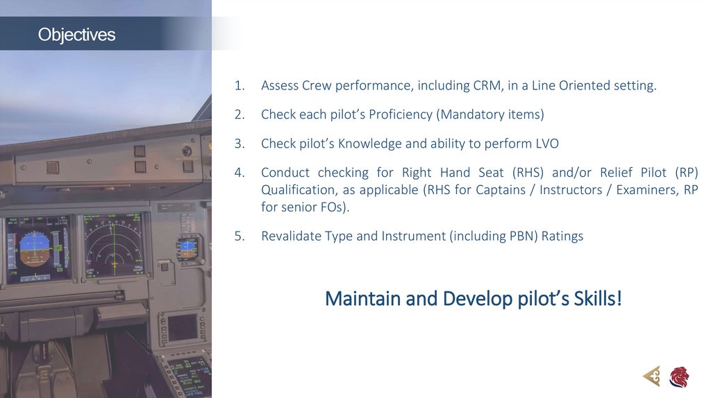 Assess Crew performance, including CRM, in a Line Oriented setting.