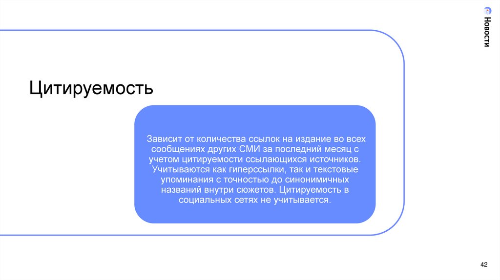 оперативности, цитируемости СМИ, доля лояльной аудитории,