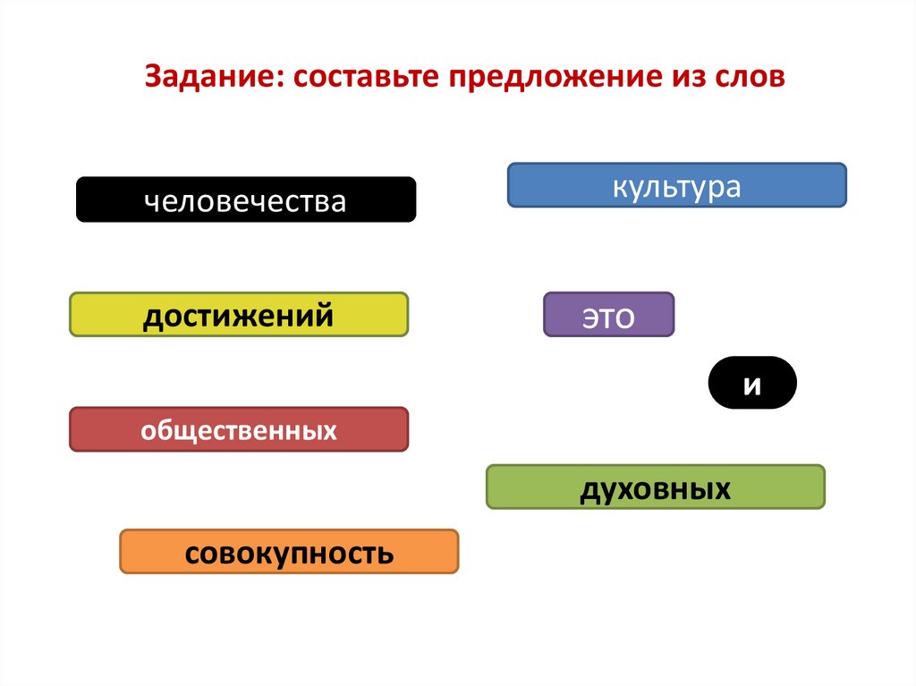 Задание: составьте предложение из словчеловечества