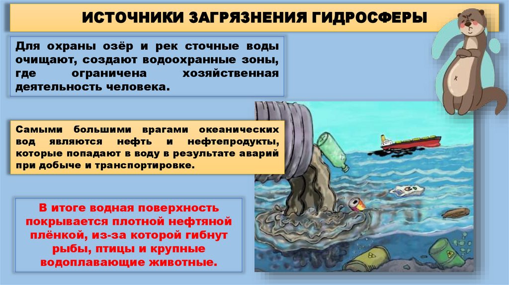 ИСТОЧНИКИ ЗАГРЯЗНЕНИЯ ГИДРОСФЕРЫДля охраны озёр и рек сточные воды