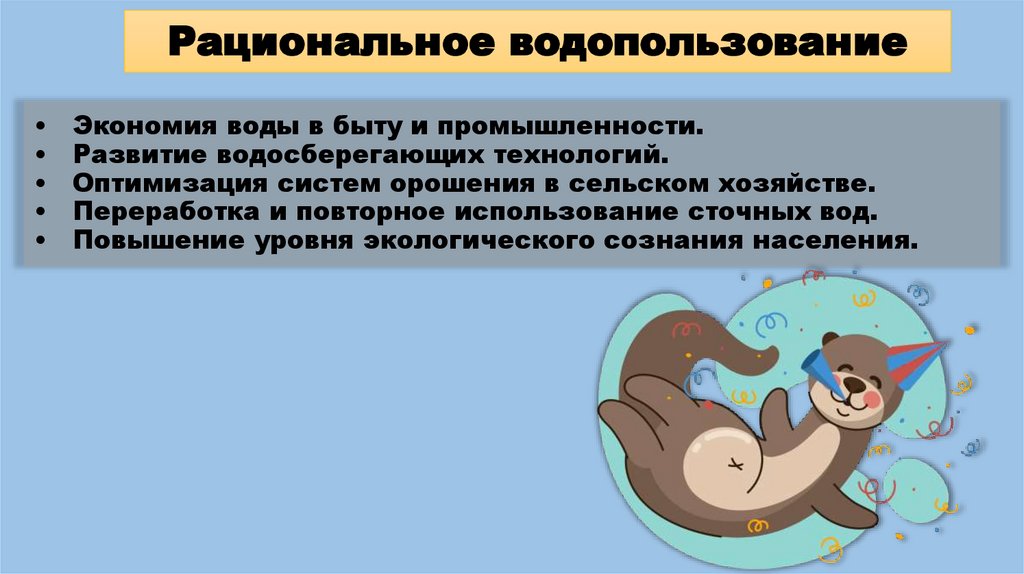 Рациональное водопользованиеЭкономия воды в быту и промышленности.