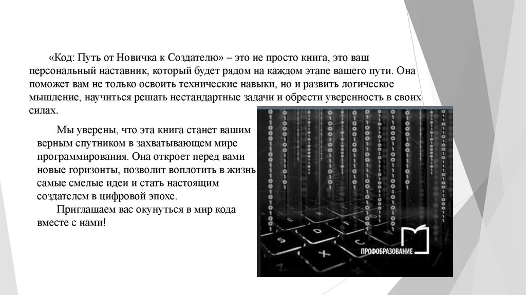 Сегодня мы собрались здесь, чтобы представить вам не просто книгу, а настоящийкомпас в мире программирования, путеводитель, который проведет вас от первых робких