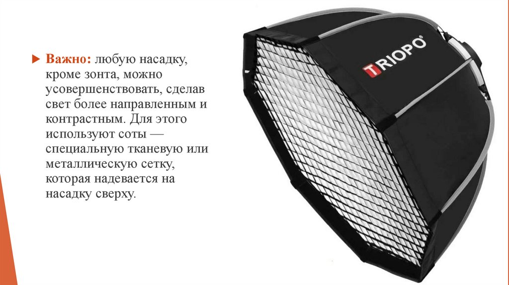 17. По названию понятно, что их часто используют для портретов, фэшн-съёмок и крупных бьюти-снимков. На английском языке насадка