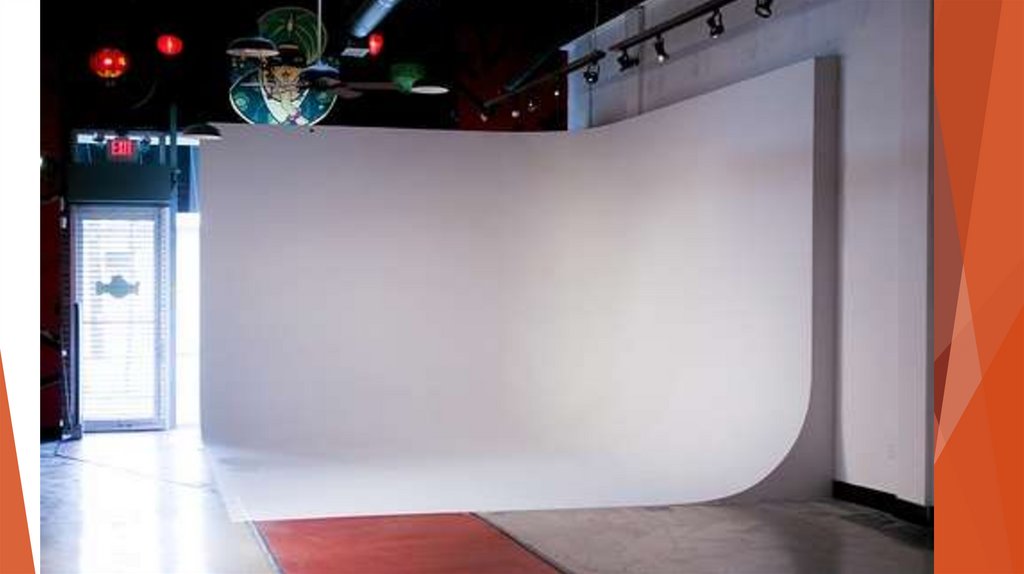 Фоны делятся на 3 группы:– циклорама. Это однотонный участок зала, который переделывают так, чтобы