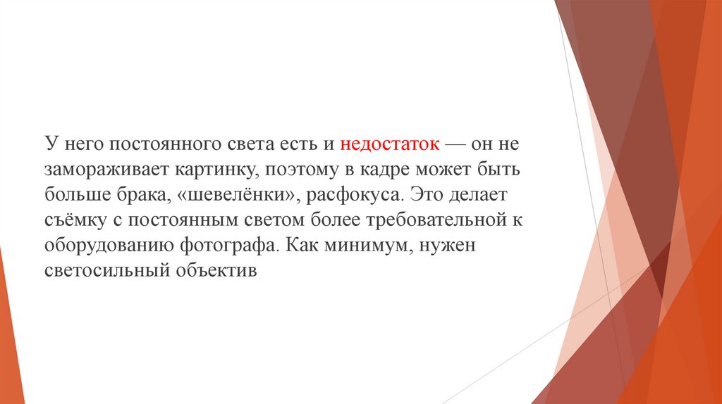 съёмку с постоянным светом более требовательной к