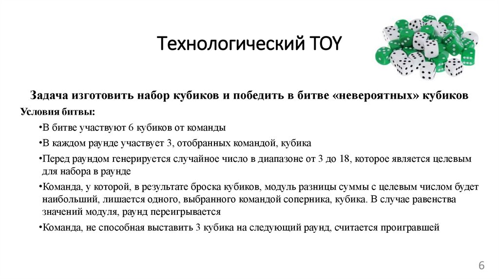 Технологический TOYЗадача изготовить набор кубиков и победить в битве «невероятных» кубиков