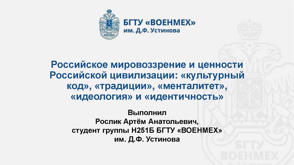 Российское мировоззрение и ценностиРоссийской цивилизации: «культурный