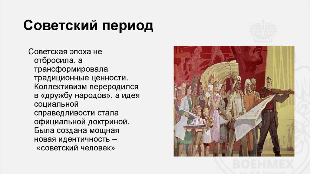 древнерусской соборности, имперской державности и советского коллективизма. Эта