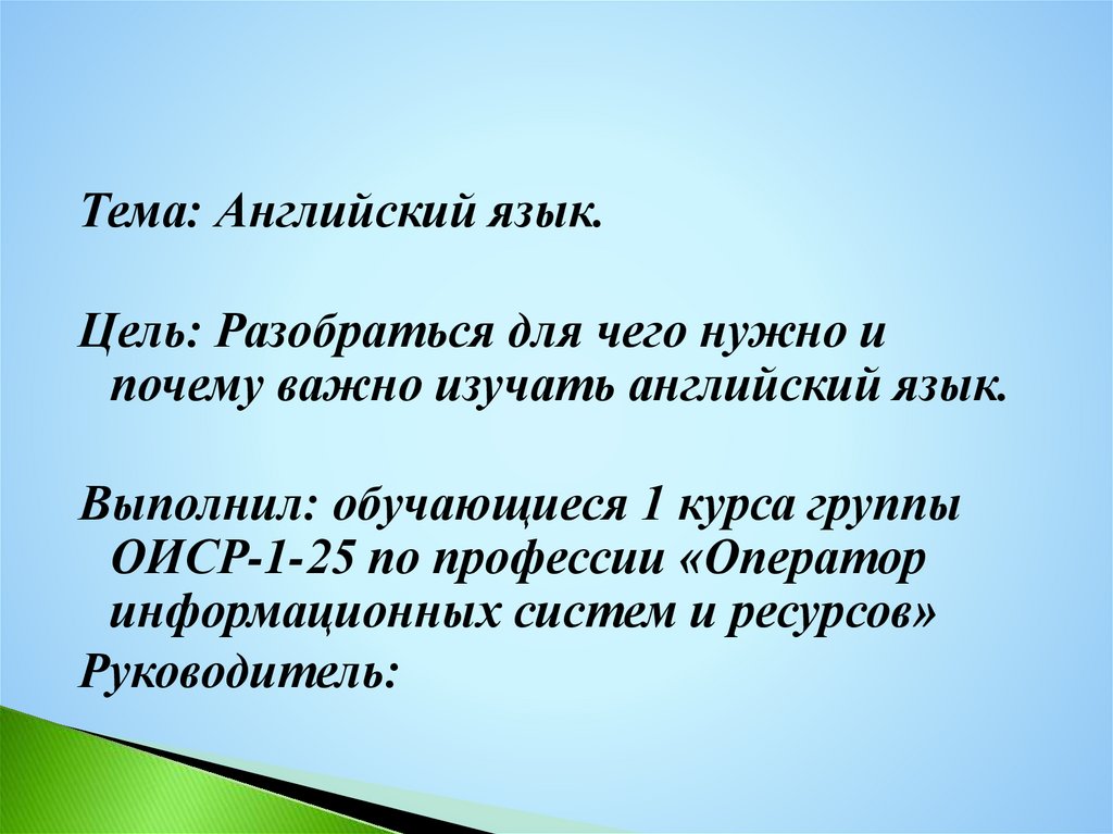 Тема: Английский язык.Цель: Разобраться для чего нужно и