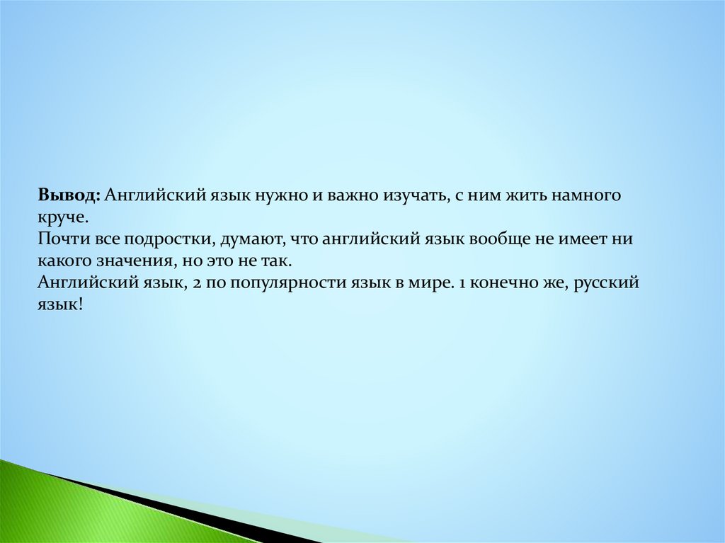 Вывод: Английский язык нужно и важно изучать, с ним жить намногокруче.