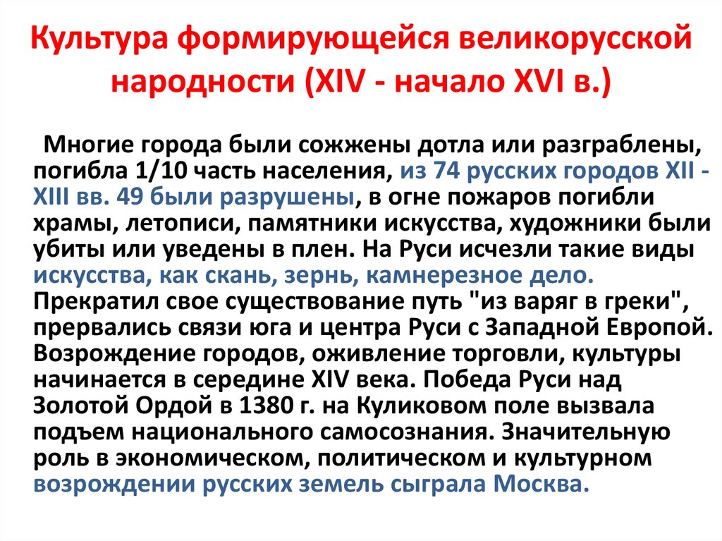 1. Культура формирующейся великорусской народности (XIV - начало XVI в.)