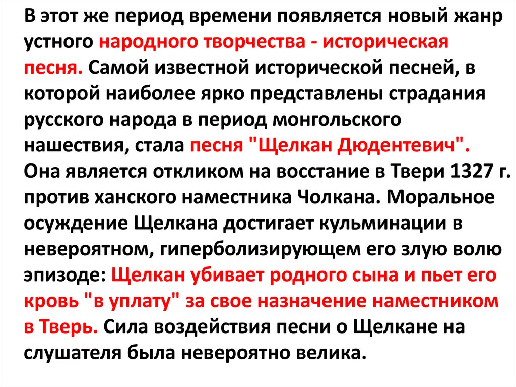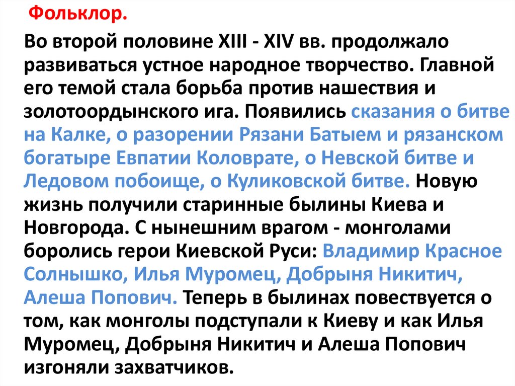 Фольклор.Во второй половине XIII - XIV вв. продолжало