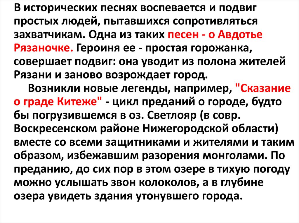 Многие города были сожжены дотла или разграблены,погибла 1/10 часть населения, из 74 русских городов XII XIII вв. 49 были разрушены, в огне пожаров погибли