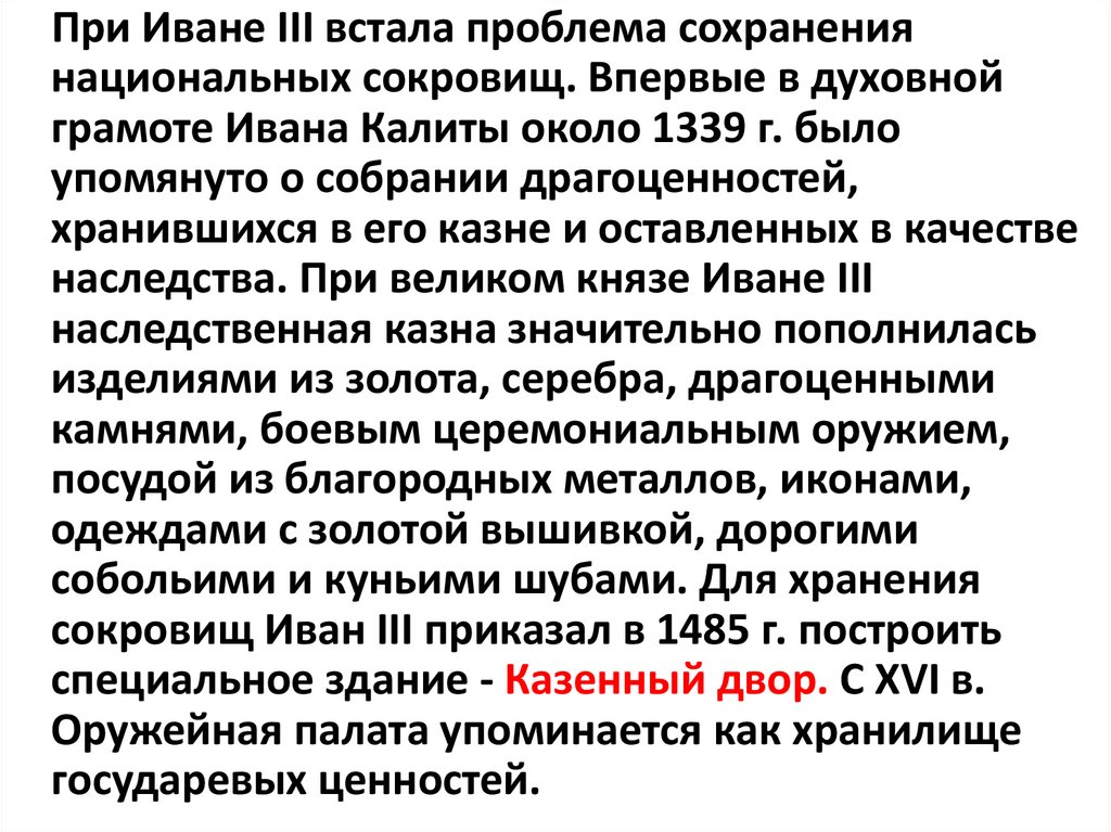 При Иване III встала проблема сохранениянациональных сокровищ. Впервые в духовной