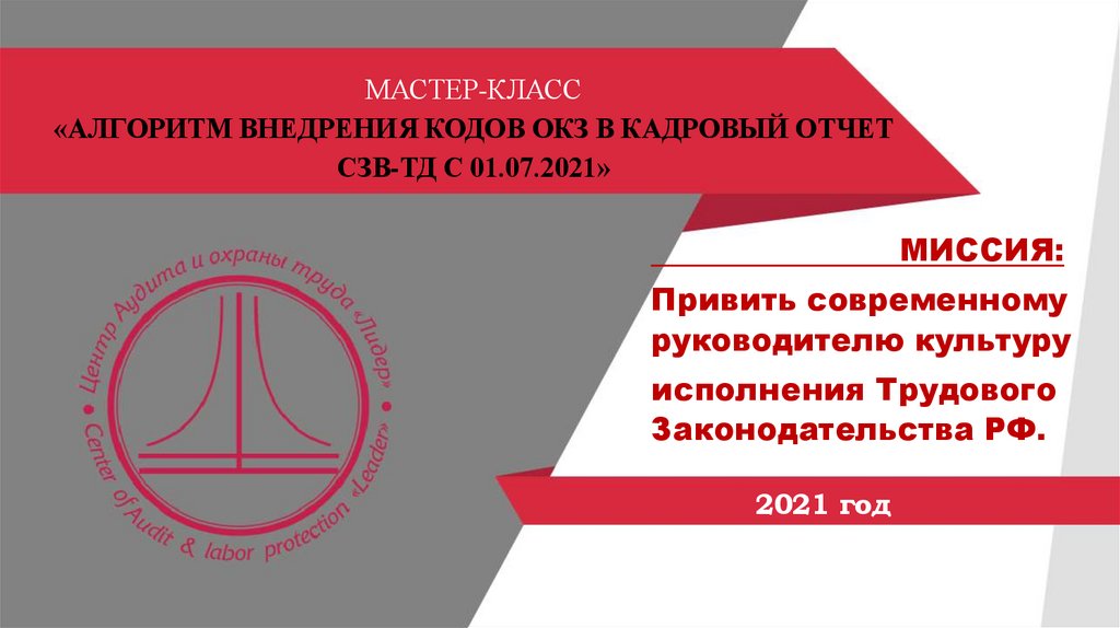 1. МАСТЕР-КЛАСС «АЛГОРИТМ ВНЕДРЕНИЯ КОДОВ ОКЗ В КАДРОВЫЙ ОТЧЕТ СЗВ-ТД С 01.07.2021»