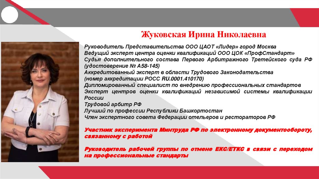 Ведущий эксперт центра оценки квалификаций ООО ЦОК «ПрофСтандарт»
