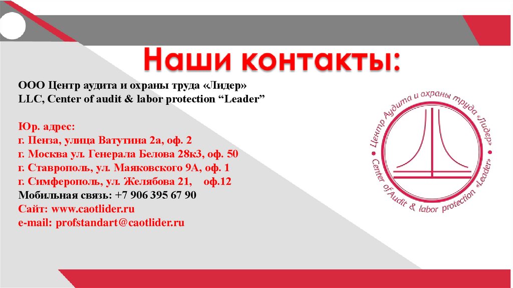 ООО Центр аудита и охраны труда «Лидер»LLC, Center of audit & labor protection “Leader”
