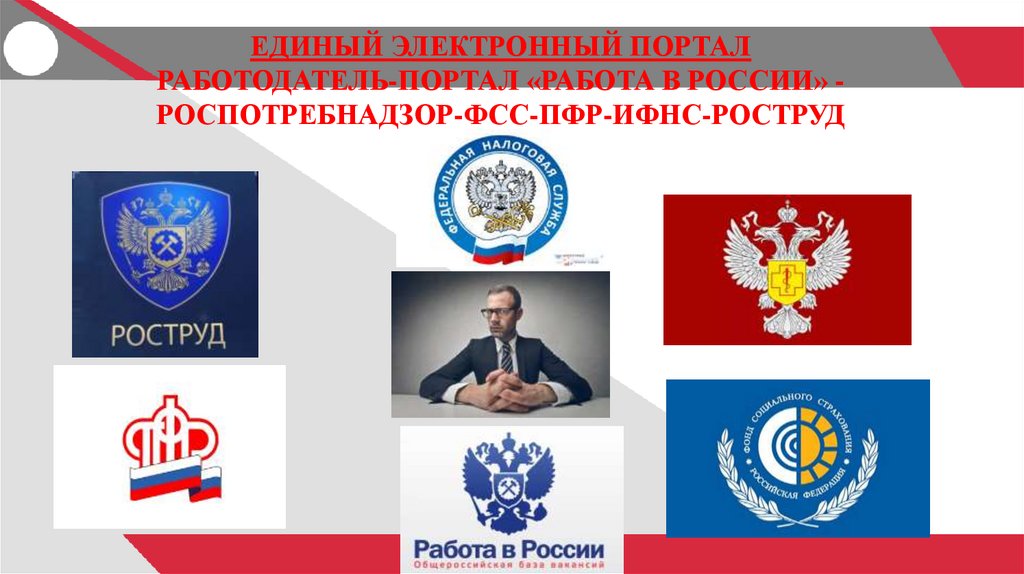 ЕДИНЫЙ ЭЛЕКТРОННЫЙ ПОРТАЛРАБОТОДАТЕЛЬ-ПОРТАЛ «РАБОТА В РОССИИ» РОСПОТРЕБНАДЗОР-ФСС-ПФР-ИФНС-РОСТРУД