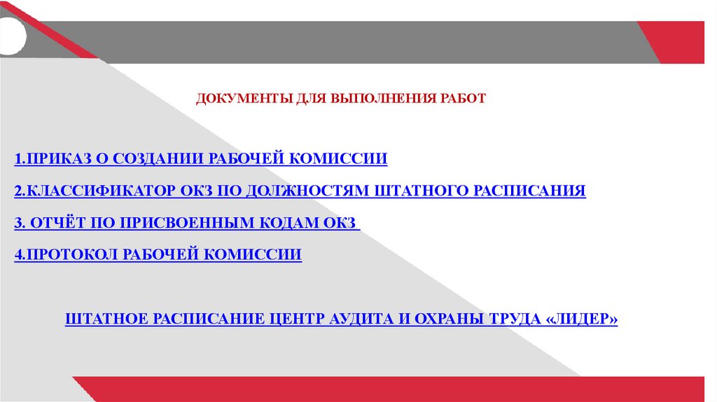 ДОКУМЕНТЫ ДЛЯ ВЫПОЛНЕНИЯ РАБОТ1.ПРИКАЗ О СОЗДАНИИ РАБОЧЕЙ КОМИССИИ