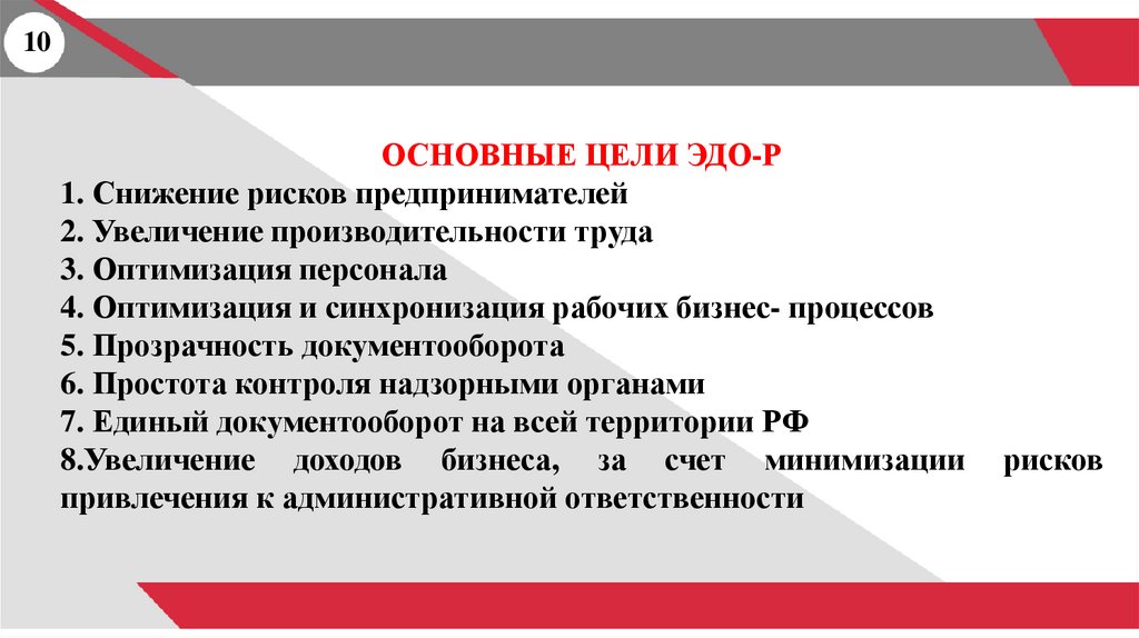 10ОСНОВНЫЕ ЦЕЛИ ЭДО-Р