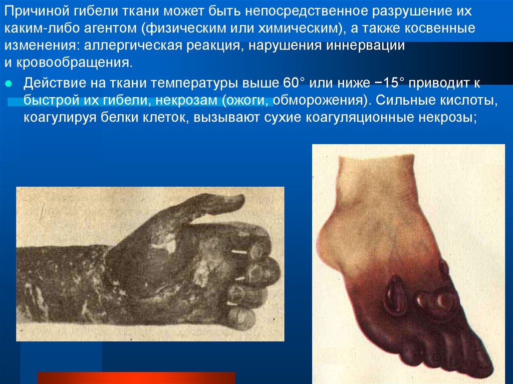 Причиной гибели ткани может быть непосредственное разрушение ихкаким-либо агентом (физическим или химическим), а также косвенные