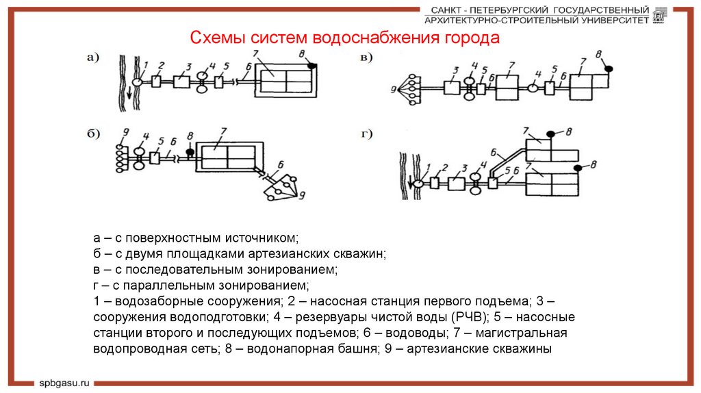 станции, станцию очистки воды или водоподготовки, водопроводную сеть и резервуары для